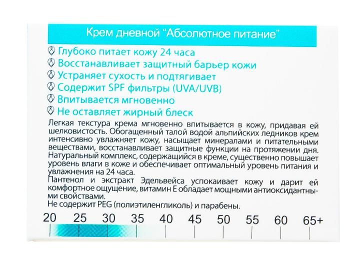 Нанесите крем утром на очищенную кожу лица легкими массажными движениями. Избегайте область вокруг глаз. Вечером используйте Крем ночной «Абсолютное восстановление».