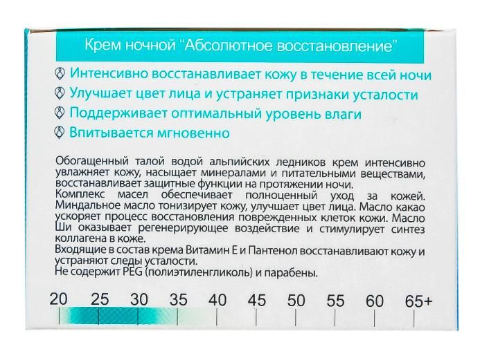 Нанесите крем вечером на очищенную кожу лица легкими массажными движениями. Избегайте область вокруг глаз. Утром используйте Крем дневной «Абсолютное увлажнение» или Крем дневной «Абсолютное питание».