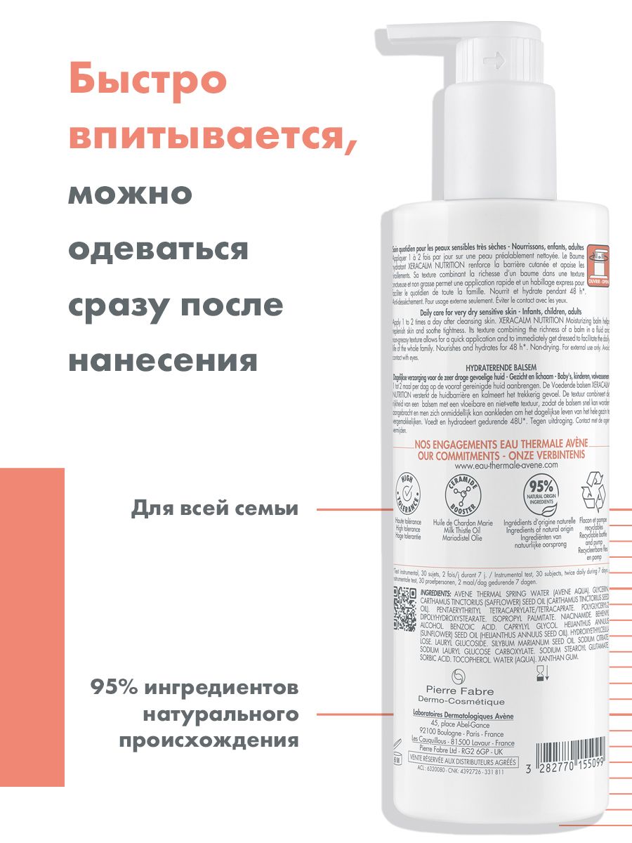 Легкий питательный бальзам – это ежедневный уход для очень сухой чувствительной кожи всей семьи. Питает и защищает кожу, снимает чувство стянутости, укрепляет кожный барьер. Нежирная, немасляная текстура без отдушки обеспечивает быстрое нанесение и впитывание, оставляя кожу увлажненной до 48 часов.