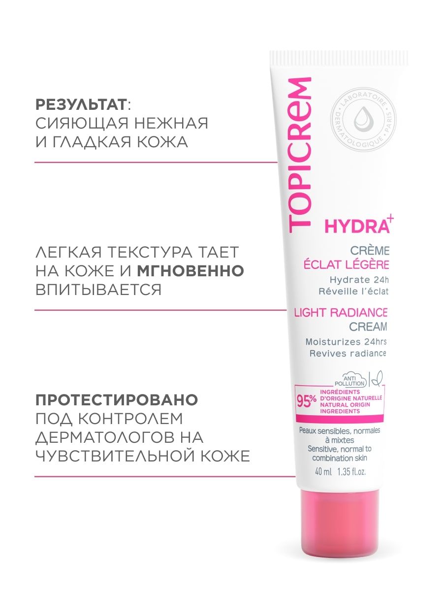 Легкий увлажняющий крем-сияние имеет легкую текстуру, которая идеально подходит для смешанной кожи, тает на коже и мгновенно впитывается. Свежий деликатный аромат дарит удовольствие.