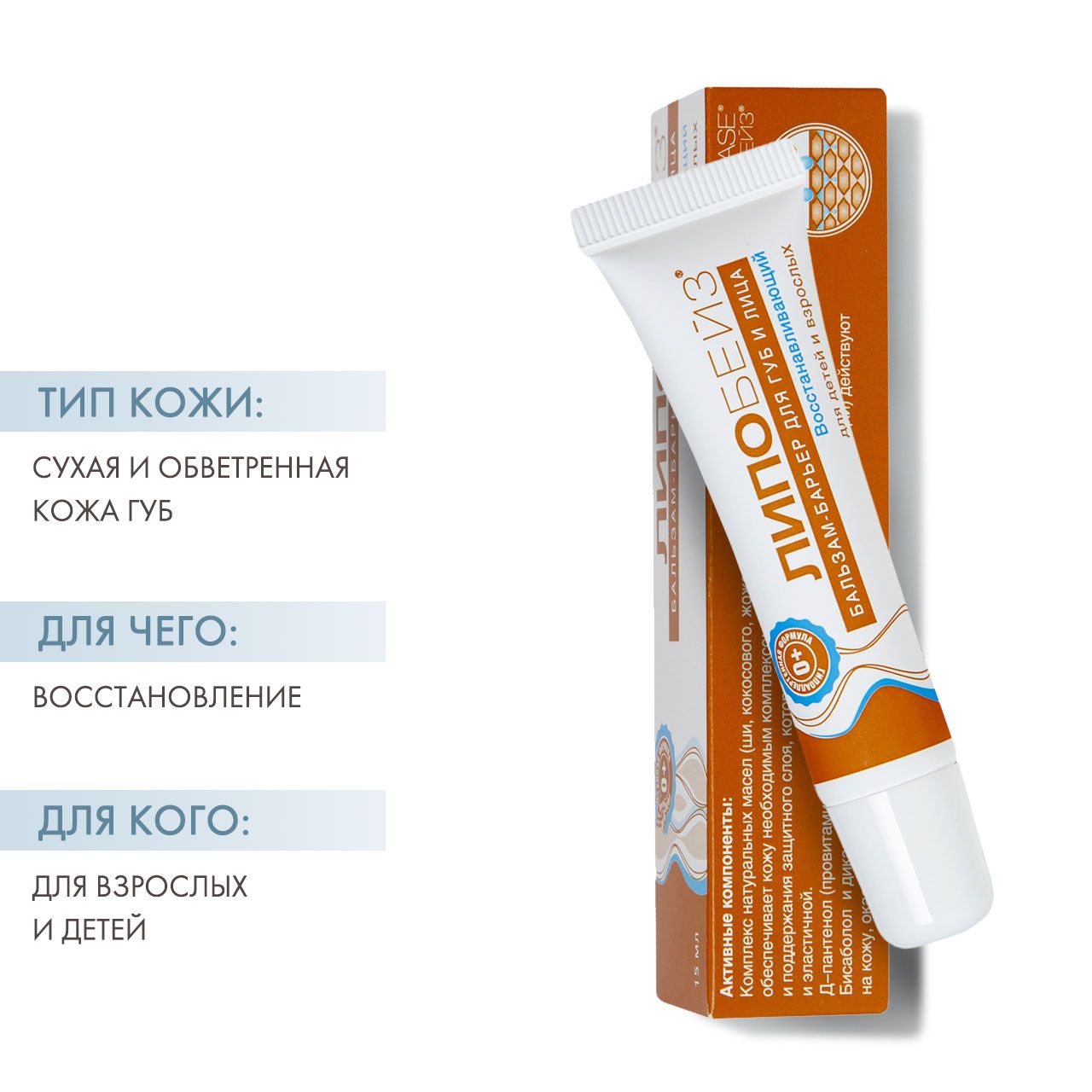 Бальзам-барьер для губ и лица разработан для деликатного ухода за сухими, потрескавшимися губами, при раздражении вокруг рта, носа и для других поврежденных и чувствительных участков кожи на лице. Смягчает кожу и делает ее эластичной и гладкой.