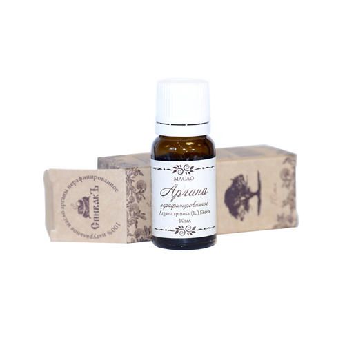 Масло арганы отжимают из семян (ядрышек), которые находятся в косточках плодов дерева аргании, методом холодного прессования. Оно считается одним из самых редких и дорогих растительных масел в мире. Запах масла арганы из необжаренных орехов достаточно специфический, только масло из обжаренных орехов обладает приятным ореховым ароматом. Для косметических целей предподчительней использовать масло из необжаренных орехов арганы. На вкус это масло напоминает сырые тыквенные семечки, только с чуть более островатым привкусом. Масло арганы считается одним из самых редких и дорогих растительных масел в мире. При регулярном применении масло арганы предохраняет кожу от обветривания, устраняет шелушение и ощущение стянутости. Обладает тонизирующими, регенерирующими и омолаживающими свойствами.