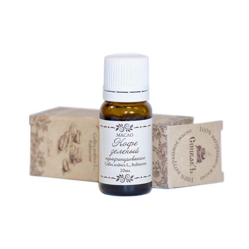 Масло кофе зеленого нерафинированное получают методом холодного прессования из зеленых плодов дерева Coffea arabica L. Оно содержит большое количество питательных веществ, таких, как линолевая, линоленовая, пальмитиновая, олеиновая, стеариновая, арахиновая, бегеновая, гиалуроновая кислоты, витамины группы B, микроэлементы, воск, кофеин, фруктовые кислоты. Благодаря этому масло кофе зеленого является многофункциональным средством для ухода за кожей и волосами. Содержит большое количество антиоксидантов, препятствует окислительным процессам и образованию свободных радикалов, тем самым замедляя старение кожи. Также защищает кожу от вредных веществ в воздухе, помогает выведению шлаков из организма. Может применяться как для лица, так и тела. Легкая текстура позволяет наносить его даже на нежную кожу вокруг глаз. Масло разглаживает морщинки, улучшает работу сальных желез, сужает поры, матирует кожу и возвращает ей здоровый цвет. Также эффективно при раздражениях, ранках, акне, экземе, угревой сыпи. Используется в качестве средства от растяжек и целлюлита благодаря содержанию кофеина (происходит стимуляция кровообращения). Масло кофе зеленого может включаться в состав масок и иных средств ухода за волосами. Устраняет сухость и ломкость волос, возвращает им здоровый блеск, питает и увлажняет. Также активно используется в качестве средства по уходу за ногтями. При втирании в кутикулу стимулирует рост ногтей, укрепляет и оздоравливает.