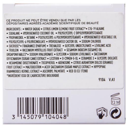 Состав: water (aqua), citrus limon (lemon) fruit extract, c15-19 alkane, squalene, hydrogenated coconut oil, polyglyceryl-2 dipolyhydroxystearate, propanediol, betaine, polyglyceryl-6 polyhydroxystearate, hydrogenated vegetable oil, polyglyceryl-6 polyricinoleate, hydrogenated castor oil, sodium chloride, sucrose, fragrance (parfum), trehalose, glyceryl undecylenate, levulinic acid, triolein, vaccinium myrtillus fruit extract, sesamum indicum (sesame) oil unsaponifiables, sodium hyaluronate, glycerin, sodium levulinate, saccharum officinarum (sugar cane) extract, lecithin, o-cymen-5-ol, ceramide 3, glyceryl dioleate, hexamidine diisethionate, tocopherol, adenosine, citrus aurantium dulcis (orange) fruit extract, maltodextrin, acer saccharum (sugar maple) extract, hippophae rhamnoides kernel extract, ascorbyl palmitate, red 33 (ci 17200)