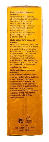 Масло для тела, волос и ногтей Lime Patchouli Escape Multi Usage Shimmering Oil всемирно известной марки SOTHYS обеспечивает качественное увлажнение кожи, способствует приданию ей сияющего блеска. В масле содержится множество натуральных питательных компонентов и мельчайших светоотражающих частиц, кроме того, масло имеет нежный аромат лимона и пачулей. Масло Shea питает, восстанавливает и смягчает кожу. Масло кукурузы придает эластичность, а жемчуг создает эффект таинственного мерцания. Результатом применения этого масла будет получение увлажненной, ухоженной и мягко сияющей кожи, а также создание на коже мерцающего эффекта. У масла отмечается выраженное антидепрессивное, антисептическое, бактерицидное, дезодорирующее, стимулирующее, тонизирующее действие. Благодаря глубокому проникновению в поры, обеспечивает идеальный уход за кожей лица, шеи, декольте, а также за волосами и ногтями.