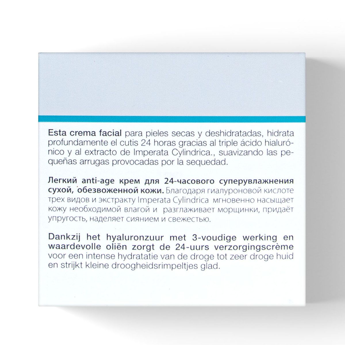 Суперувлажняющий крем с легкой, оптимально сбалансированной текстурой и приятным ароматом мгновенно увлажняет и улучшает качество кожи. Является великолепной базой под макияж. Важнейшая особенность - наличие в составе 3 типов гиалуроновой кислоты (высокомолекулярной, низкомолекулярной и и перекрестно-сшитой), которая обеспечивает ярко выраженное и моментальное увлажнение, а также эффект-лифтинга.