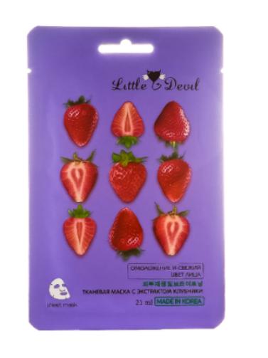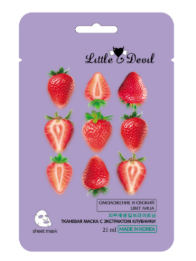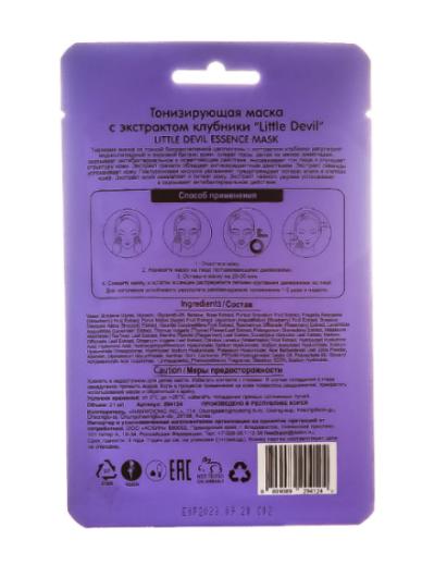 Тканевая маска из тонкой биоразлагаемой целлюлозы с экстрактом клубники регулирует водно-липидный и жировой баланс кожи, сужает поры, делая их менее заметными, оказывает антибактериальное и осветляющее действие, выравнивает тон лица и улучшает структуру кожи.