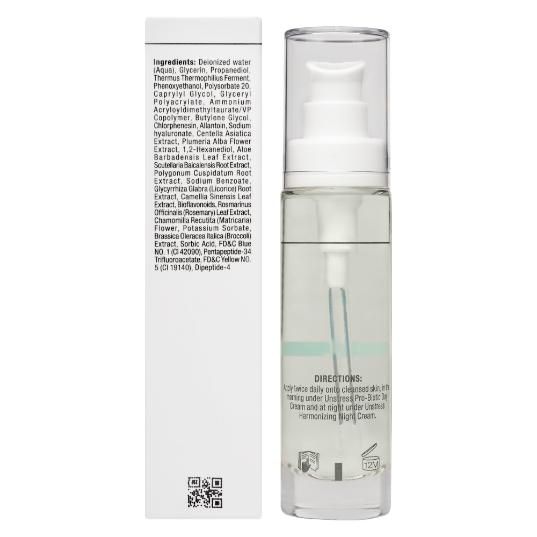 Активы: деонизированная вода, гиалуронат натрия, глицерин, биофлавоноиды, экстракт алоэ, фермент термофилов, экстракты камелии, центеллы азиатской, корня солодки, дипептид-4, экстракты розмарина лекарственного, шлемника байкальского, плюмерии, брокколи, аллантоин.