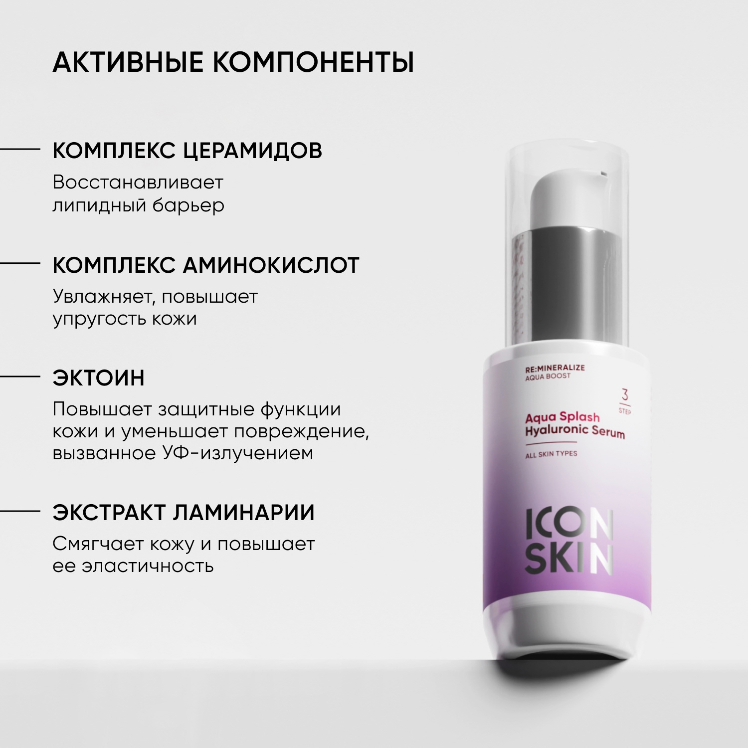 Сыворотка Aqua Splash эффективно решает проблему дегидратации: мгновенно увлажняет кожу, пролонгированно удерживает влагу в клетках и профилактирует преждевременное старение кожи. Сбалансированная формула активно восполняет дефицит влаги и успокаивает кожу, восстанавливает ее гидролипидный барьер и тонус. Повышает упругость и эластичность, разглаживает морщины, вызванные обезвоженностью, убирает шелушение.