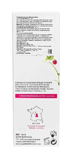- комплекс из эссенциального масла зелёного корсиканского мирта, эссенциального масла - абсолют прованской майской розы, экстракта овернской малины и экстракта французского персика 10,015% - обладает антиоксидантным и успокаивающим свойством. Выращенная в регионе Граса майская роза особенно рекомендуется для регенерации обезвоженной кожи. Малина богата лимонной кислотой, сахарами, клейковиной и витамином С, что делает её полезной для увлажнения и питания кожи. Экстракт персика богат сахарами, пектином, яблочной и лимонной кислотой, обладает увлажняющим и успокаивающим свойствами, насыщает кожу витаминами