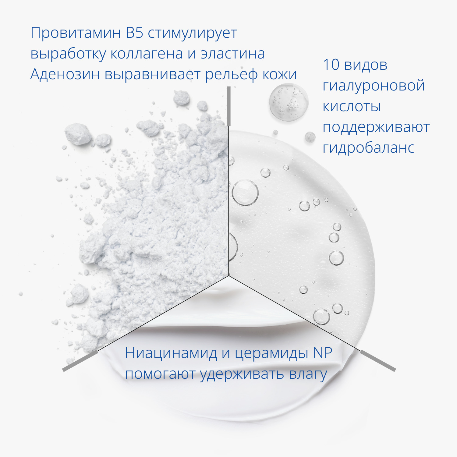 Легкий освежающий крем пролонгированного действия с комплексом из 10 видов гиалуроновой кислоты высокой степени очистки, трегалозы, церамида NP и ксилитилглюкозидом обеспечивает увлажнение кожи до 100 часов. Благодаря уникальной мягкой текстуре крем быстро впитывается без липкого эффекта и придает сияние коже. Подходит для всех типов кожи с недостатком увлажнения. Подтверждено клиническими испытаниями: