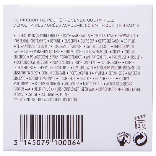 Состав: citrus limon (lemon) fruit extract, water (aqua), c15-19 alkane, propanediol, isostearyl isostearate, betaine, glycerin, sucrose, octydodecanol, corylus avellana (hazel) seed oil, fragrance (parfum), xylitylglucoside, hydrogenated castor oil, magnesium sulfate, oxidized corn oil (zea mays oil), silica, sodium chloride, polyglyceryl-6 polyhydroxystearate, anhydroxylitol, trehalose, triolein, octyldodecyl xyloside, polyglyceryl-6 polyricinoleate, jojoba esters, c10-18 triglycerides, glyceryl undecylenate, levulinic acid, sesamum indicum (sesame) oil unsaponifiables, sodium benzoate,polyglycerin-3, xylitol, ceramide 3, glyceryl dioleate, sodium levulinate , tocopherol, lecithin, o-cymen-5-ol, sodium hyaluronate, sodium hydroxide, adenosine, maltodextrin, acacia decurrens flower wax, helianthus annuus (sunflower) seed wax, hippophae rhamnoides kernel extract, xylose, ascorbyl palmitate