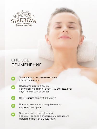 Один шарик рассчитан на одно принятие ванны. Положите шарик в ванну, наполненную теплой водой (36-38 C), и дайте ему раствориться. Принимайте ванну 15-20 минут. После ванны не используйте мыло или гель для душа. Ополоснитесь теплой водой, промокните тело полотенцем и позвольте маслам впитаться в Вашу кожу.