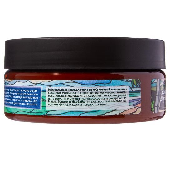 Натуральный крем для тела из «Кокосовой коллекции» содержит максимально возможное количество кокосового масла и молока, что позволяет не только увлажнить кожу, но и устранить повреждения и раздражение. Масла бораго и баобаба питают, восстанавливают защитные функции кожи и придают сияние. Аромат «Кокосовой коллекции» - это роскошные, манящие Мальдивы с их белоснежным песком, кристально чистой бирюзовой водой, шелестом волн, криком тропических птиц, диковинными садами, полными спелых кокосов, и коралловыми рифами – рай на земле!