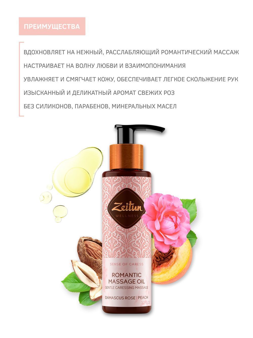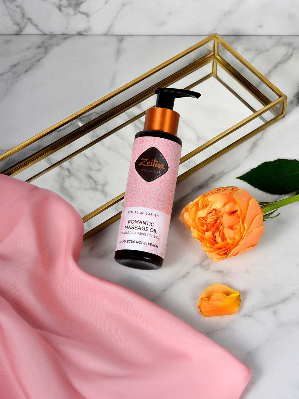 Насладитесь чувственным массажем, раскрепостите тело и мысли с натуральным средством от Zeitun Wellness. Массажное масло с изысканной аромакомпозицией – настоящий подарок природы для романтических натур и влюбленных. Деликатный аромат роз моментально снимает напряжение и скованность, расслабляет, настраивает на волну нежности, любви и взаимопонимания. Увлажняющие масла дамасской розы, персика и сладкого миндаля совершенствуют, смягчают, делают кожу бархатистой и нежной, а также обеспечивают легкое скольжение рук во время массажа.