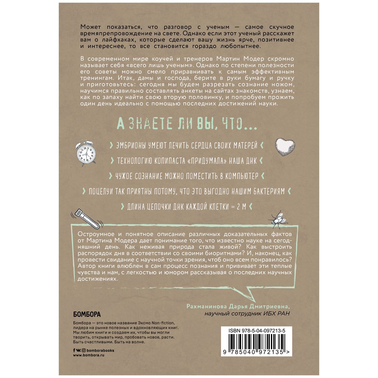 Эта книга — сборник советов для повседневной жизни, эффективность которых доказана с помощью науки. В юмористической форме автор проведет вас по кромке ДНК, станет гидом в дебрях генетики и биологии и расскажет обо всех лайфхаках, которыми пользуются сами ученые.