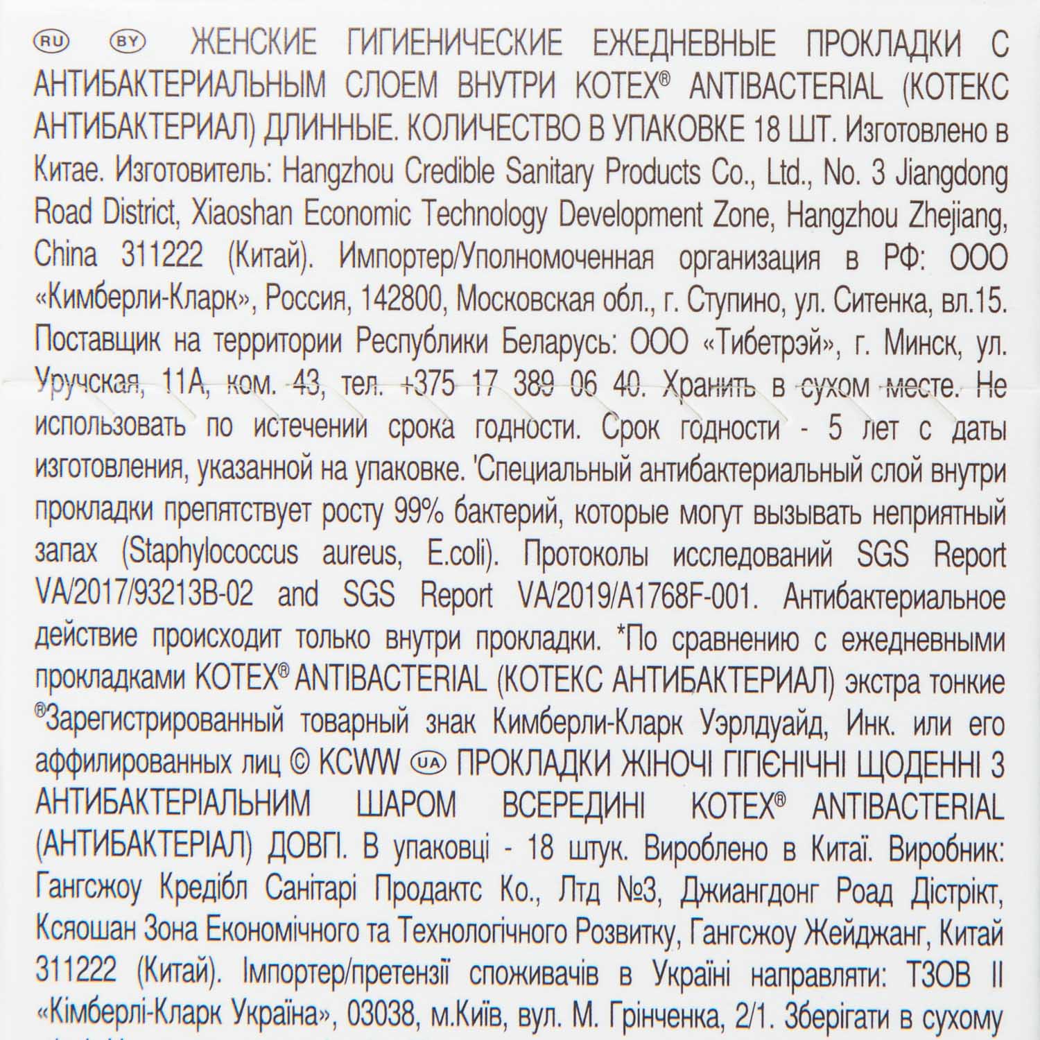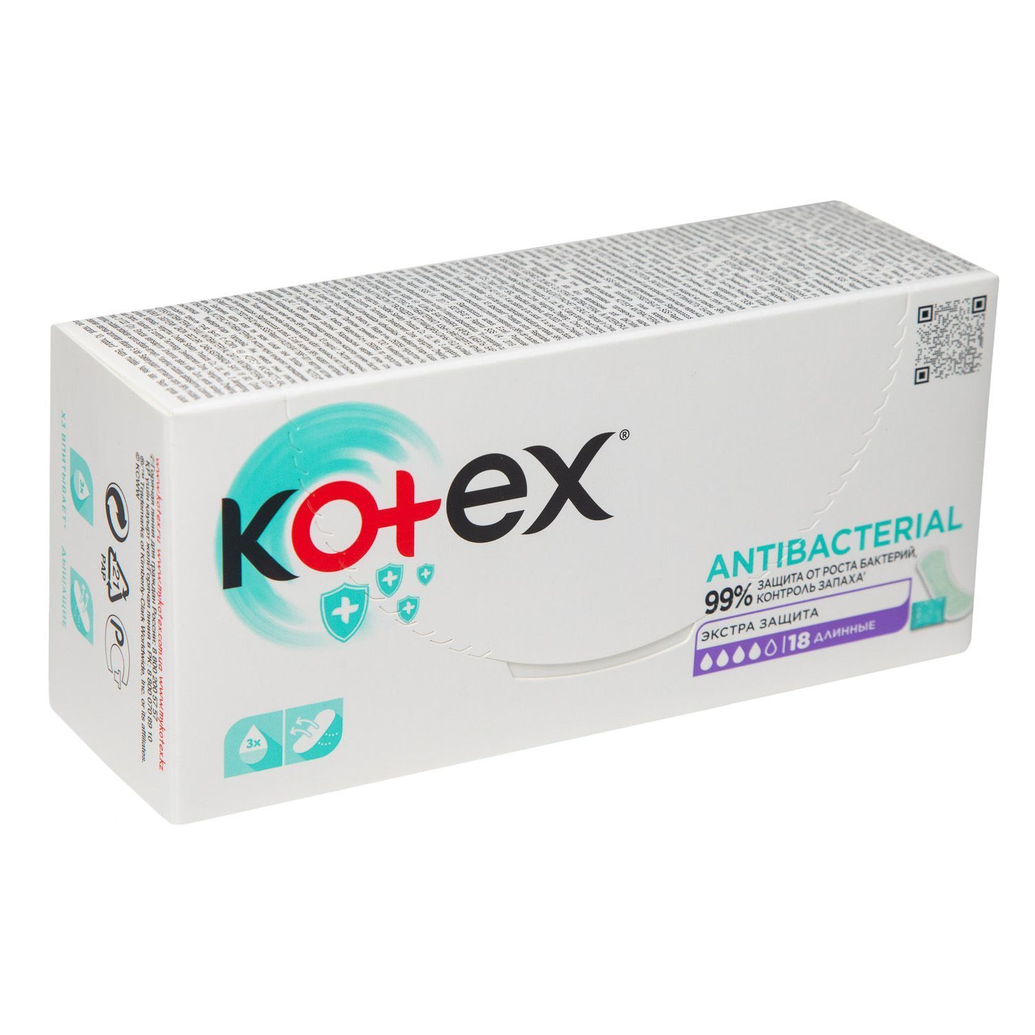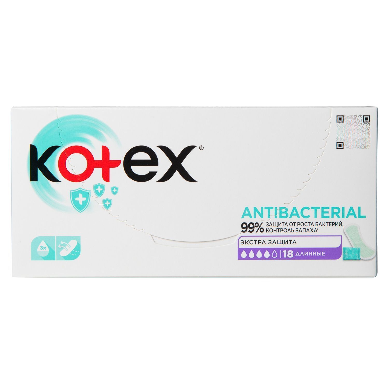 Ежедневные прокладки Kotex Antibacterial длинные — это экстра защита на весь день. Антибактериальный слой на 99% предотвращает рост бактерий внутри прокладки и нейтрализует запах.