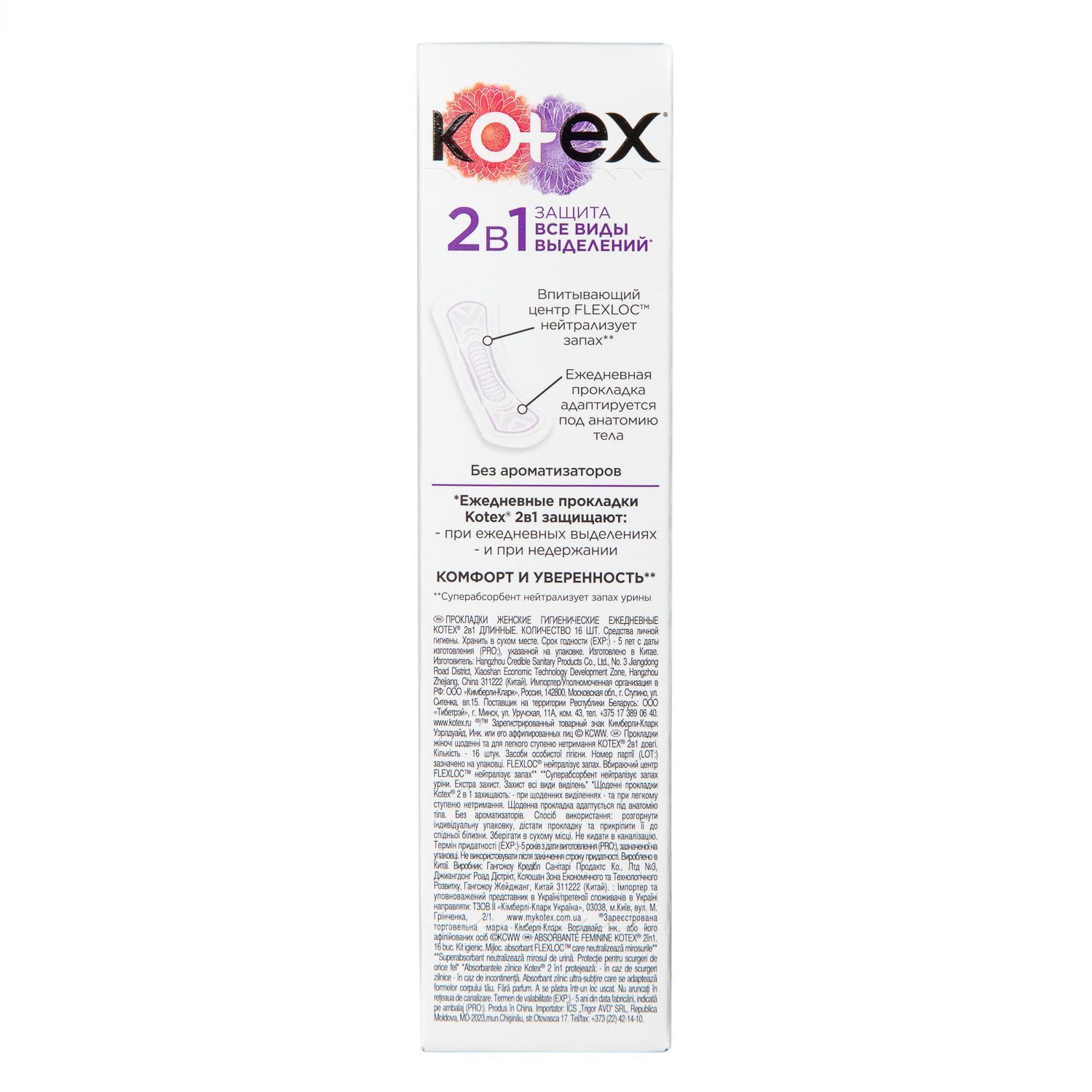 Ежедневные прокладки Kotex 2в1 — уникальная защита и комфорт. Обеспечивает защиту сразу от двух типов выделений – ежедневных и недержания мочи легкой степени.