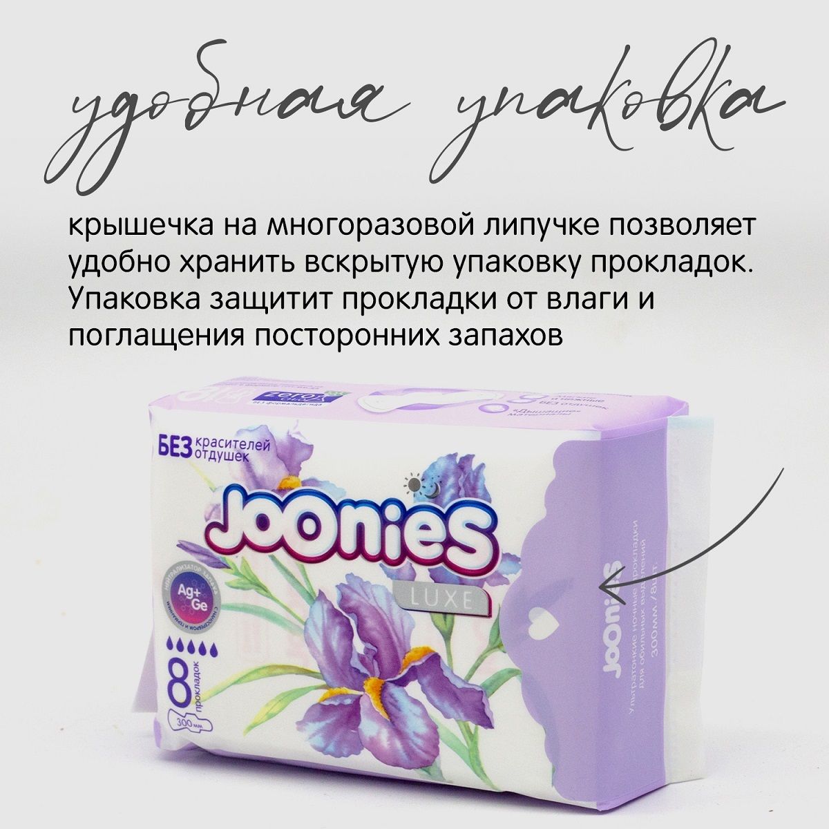 Благодаря специальному слою-полоске с наносеребром и германием прокладки Joonies:
