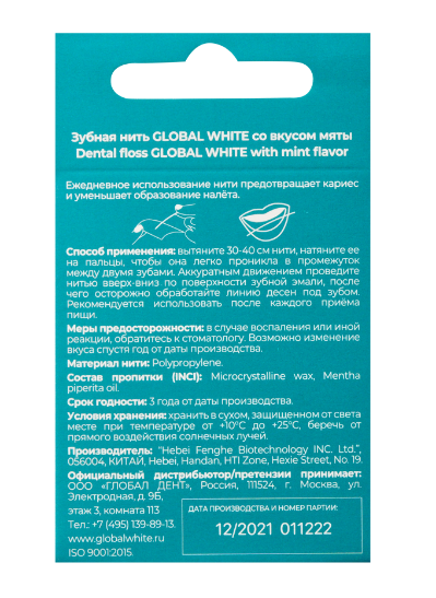 Результат применения: ежедневное использование нити предотвращает кариес и уменьшает образование зубного налета.