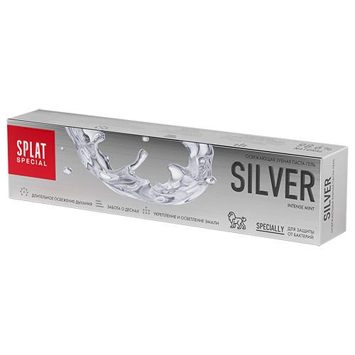 Антибактериальная освежающая зубная паста для бережного осветления эмали SPLAT Special Silver Серебро для защиты от бактерий и бережного осветления эмали.