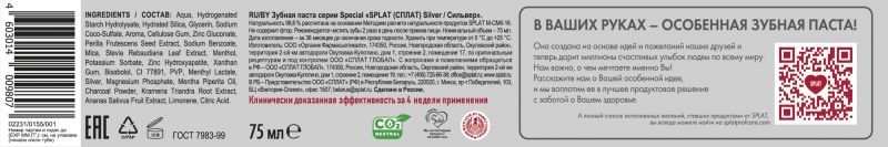 Aqua, Hydrogenated Starch Hydrolysate, Hydrated Silica, Glycerin, Sodium Coco-Sulfate, Aroma, Cellulose Gum, Zinc Gluconate, Perilla Frutescens Seed Extract, Sodium Benzoate, Mica, Stevia Rebaudiana Leaf Extract, Menthol, Potassium Sorbate, Zinc Hydroxyapatite, Xanthan Gum, Bisabolol, CI 77891, PVP, Menthyl Lactate, Silver, Magnesium Phosphate, Mentha Piperita Oil, Charcoal Powder, Krameria Triandra Root Extract, Ananas Sativus Fruit Extract, Limonene, Сitric Acid.