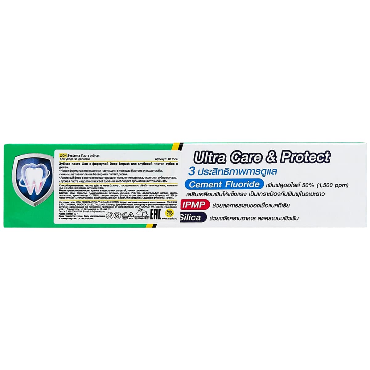 Зубная паста Systema от Lion Thailand создана для эффективного ухода за деснами, их укрепления и защиты. Формула гигиенического средства насыщена активными соединениями кальция, которые вместе с фтором заботятся о крепости зубной эмали. Микрочастицы Deep Impact глубоко проникают в толщу зубного налета, чтобы за несколько секунд размягчить и удалить его. Благодаря пенящемуся составу паста работает не только быстро, но и безопасно.