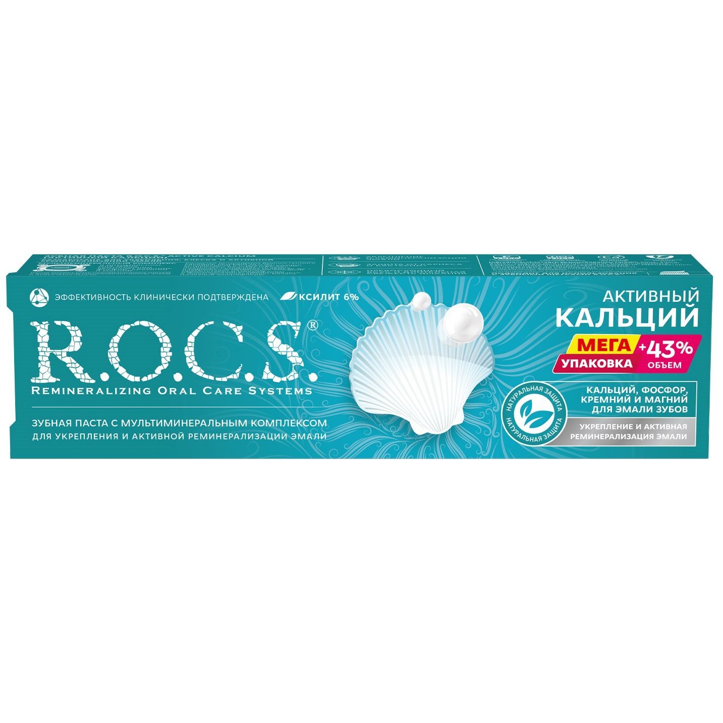 Реминерализирующая зубная паста R.O.C.S. «Активный кальций», предназначена для насыщения зубной эмали необходимыми микроэлементами. Паста является богатым источником биологически доступного кальция, который способен встраиваться в естественную структуру эмали, возвращая ей блеск и здоровую белизну. Кроме этого, минеральный комплекс, заложенный в основу пасты, нормализует микрофлору полости рта, снижает образование зубного налета, повышает устойчивость зубов к кариесу и эффективно освежает дыхание.
