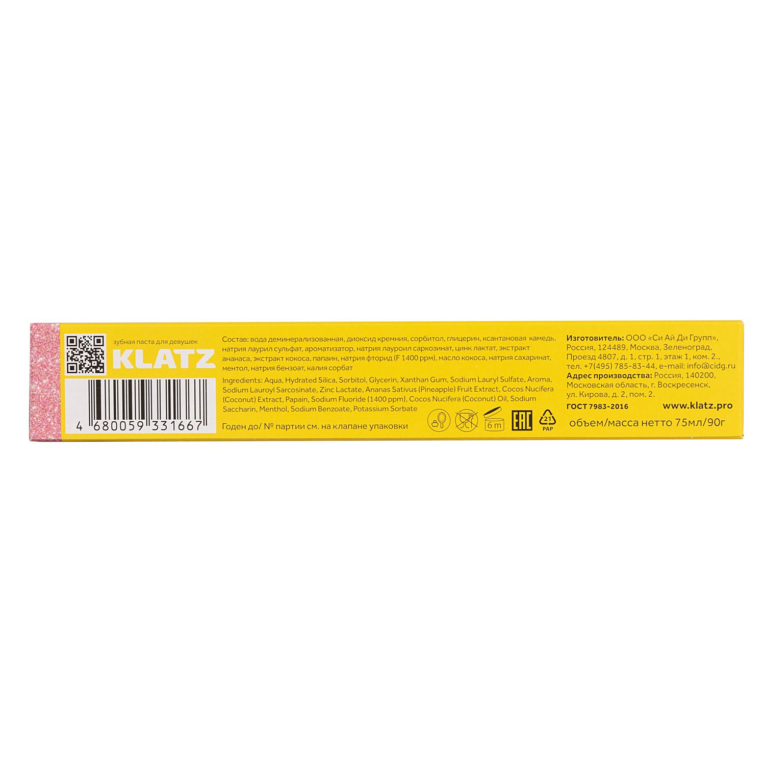 Яркий тропический вкус зубной пасты Klatz Пина колада с пышными нюансами кокоса и ананаса перенесет вас на Антильские острова! Зубная паста содержит очищающий комплекс с эффектом полирования зубной эмали и натуральные энзимы, способствующие мягкому отбеливанию. Почувствуйте летнее наслаждение с карибскими нотами!