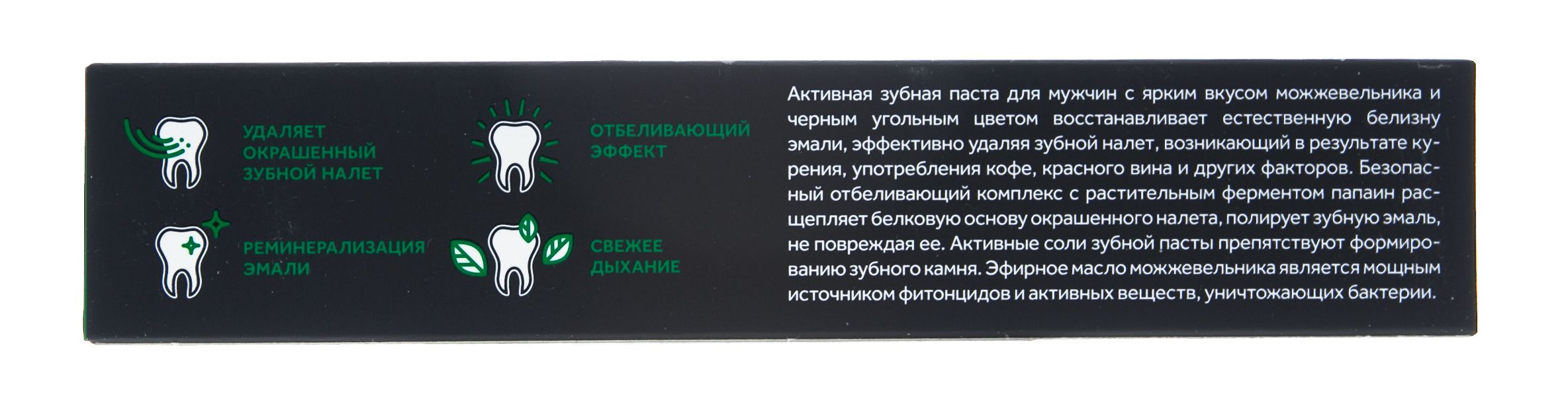 Активная зубная паста для мужчин с ярким вкусом можжевельника и черным угольным цветом!