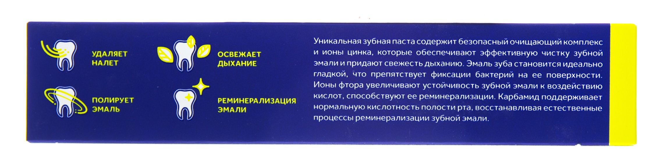 Уникальная зубная паста "Свежее дыхание" содержит безопасный очищающий комплекс и ионы цинка, которые обеспечивают эффективную чистку зубной эмали и придают свежесть дыханию.