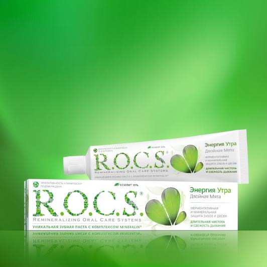 Контрастный душ, двойной эспрессо, динамичная музыка… Еще одно средство взбодриться и начать утро с хорошего настроения – зубная паста R.O.C.S. «Энергия утра», которая прекрасно освежает и гарантирует Вам длительное ощущение чистоты.