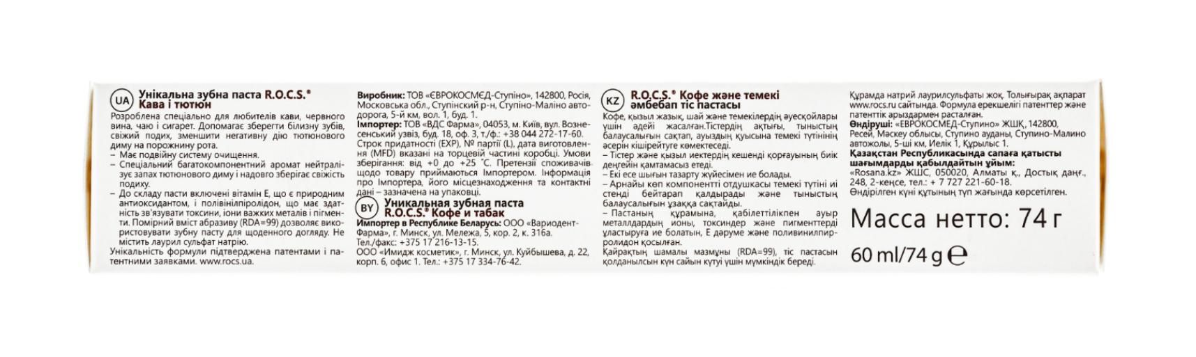 Зубная паста "Кофе и табак", 74 г