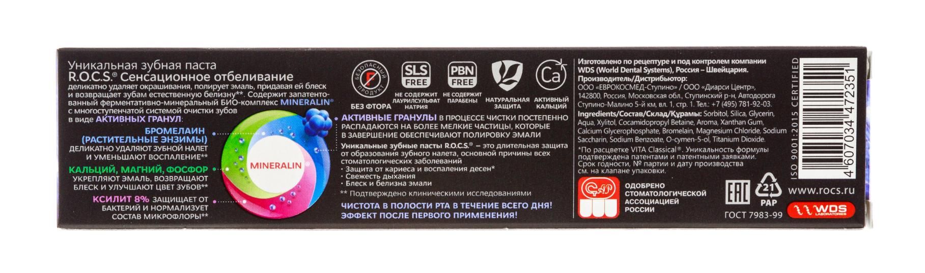 ! Отбеливающая зубная паста R.O.C.S. Сенсационное отбеливание.