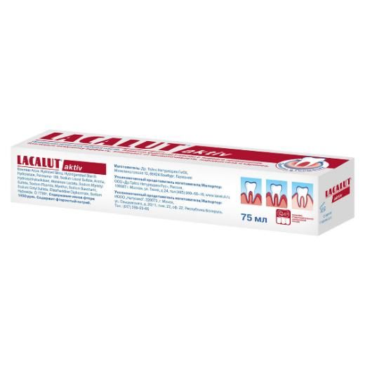 Зубная паста LACALUT® aktiv с уникальной активной формулой с лактатом алюминия укрепляет десны благодаря вяжущему эффекту, защищает от кровоточивости и предупреждает развитие пародонтоза. Входящий в состав фторид натрия обеспечивает профилактику кариеса.