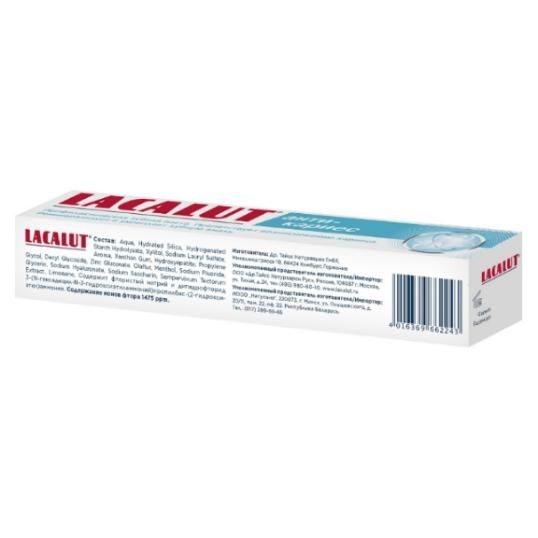 Зубная паста LACALUT анти-кариес содержит специальную двойную комбинацию фторидов, которая быстро проникает в зубную эмаль, реминерализует и укрепляет ее, препятствует возникновению кариеса. Глюконат цинка оказывает противомикробное действие, предотвращает образование зубного налета. Гидроксиапатит дополнительно полирует поверхность зубов и способствует реминерализации. Гиалуронат натрия естественным образом тонизирует и увлажняет полость рта, обеспечивая тем самым здоровье десен.
