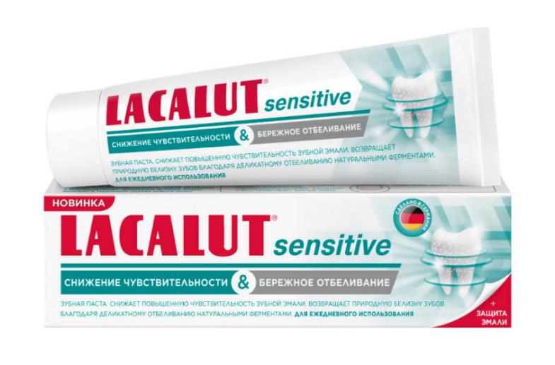 Зубная паста Lacalut sensitive снижение чувствительности&бережное отбеливание содержит хлорид калия для снижения чувствительности зубов и комплекс гидроксиапатита и фторида натрия для укрепления эмали. Снижение чувствительности достигается уже после нескольких чисток. Природные ферменты из ананаса и папайи тщательно удаляют зубной налет и осветляют эмаль. Растительный антисептик снижает воспаление, которое часто сопровождает повышенную чувствительность в области шейки зуба.
