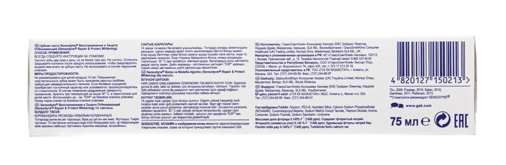 Зубная паста "Восстановление и Защита отбеливающая", 75 мл