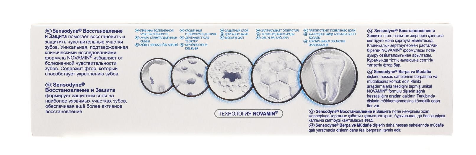 Новая зубная паста на основе технологии NovaMin® отличается от других. Клинически доказано, что ее уникальная формула с кальцием и фосфатами помогает восстанавливать поврежденные участки эмали с помощью природных для зуба материалов, тем самым избавляя от повышенной чувствительности.