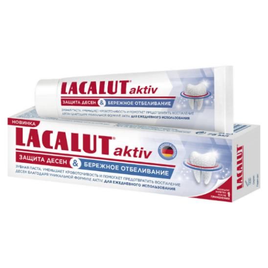 Уникальная формула aktiv с лактатом алюминия тонизирует и укрепляет десны, предотвращает их воспаление и кровоточивость. Фторид реминерализирует зубную эмаль и защищает зубы от кариеса. Гиалуроновая кислота увлажняет и предотвращает сухость полости рта. Природные ферменты способствуют восстановлению природной белизны зубов, не травмируя зубную эмаль.