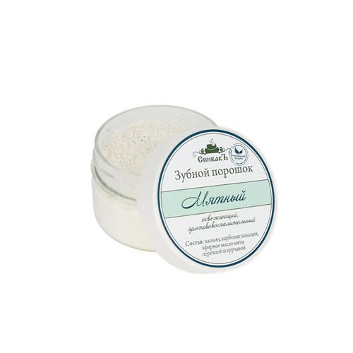 Зубной порошок известен с давних времен и снова набирает популярность как натуральное средство для очистки зубов. Мягкая практически невесомая консистенция позволяет бережно очистить налет, нормализовать кислотно-щелочной баланс во рту и отполировать поверхность зубов. Карбонат кальция в составе укрепляет зубную эмаль. Каолин, благодаря своим адсорбционным свойствам, снижает риск развития кариеса, а также размягчает зубной камень, снижает кровоточивость десен и позволяет отбеливать зубы. Эфирное масло мяты освежает дыхание и оказывает антибактериальное и противовирусное действие.