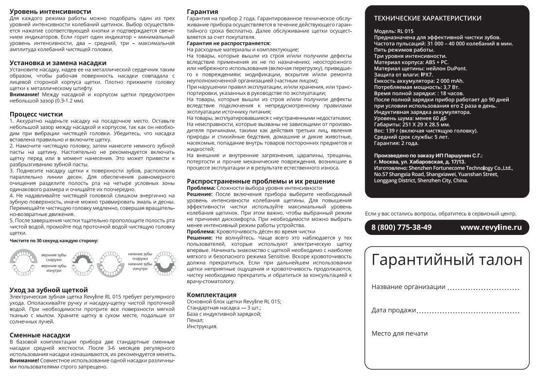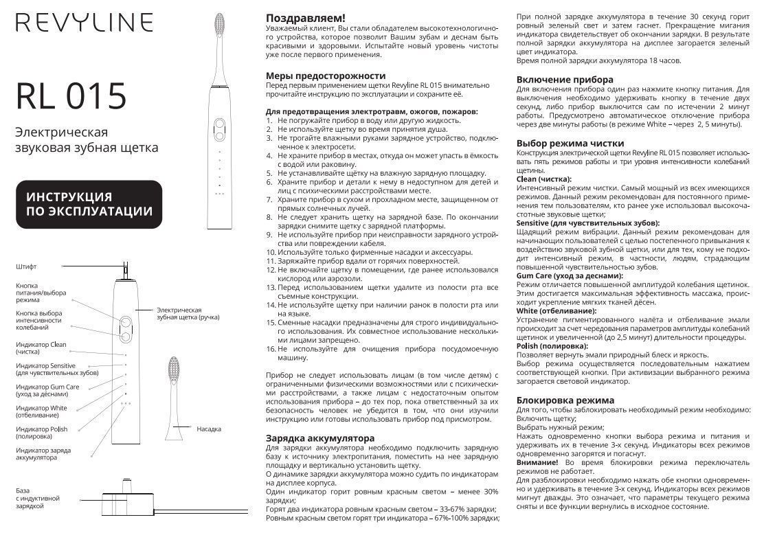 Электрическая звуковая зубная щетка Revyline RL 015 обеспечивает ежедневный эффективный уход за полостью рта: