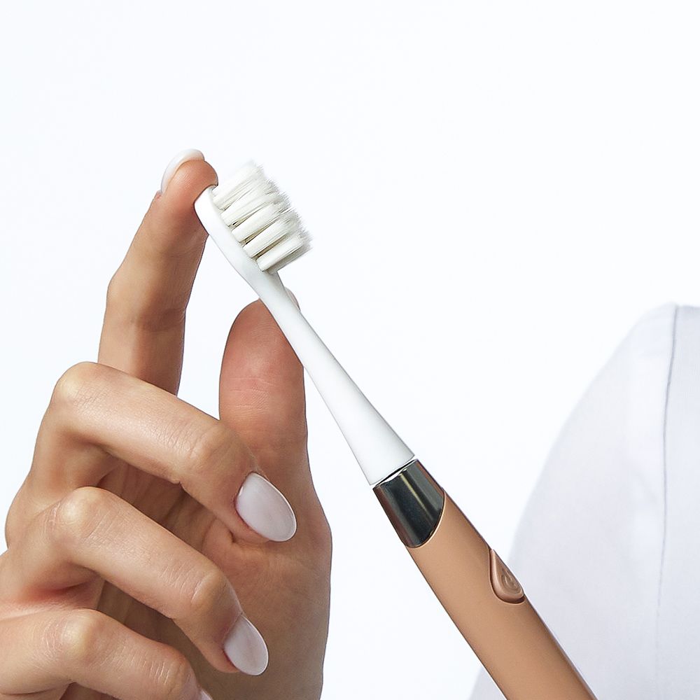 Благодаря звуковому принципу работы щетки создается эффект кавитации - смесь пасты, слюны и воды образует пузырьки. Схлопываясь, они производят ударные волны, которые отделяют налет от эмали.