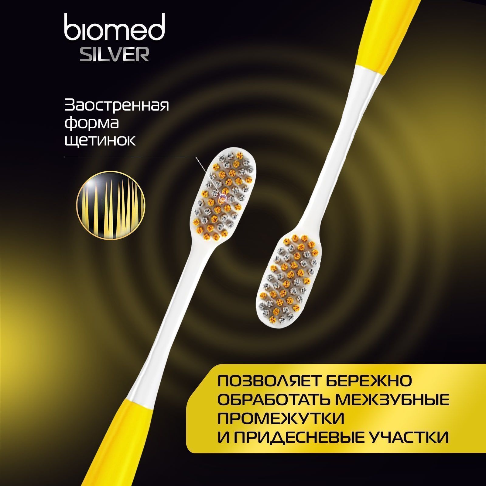 Зубная щетка средней жесткости Biomed Silver с ионами серебра на утонченных щетинках очистит самые труднодоступные места, включая межзубные промежутки. Антибактериальное покрытие щетины препятствует размножению бактерий. Рекомендована к использованию с 14 лет.