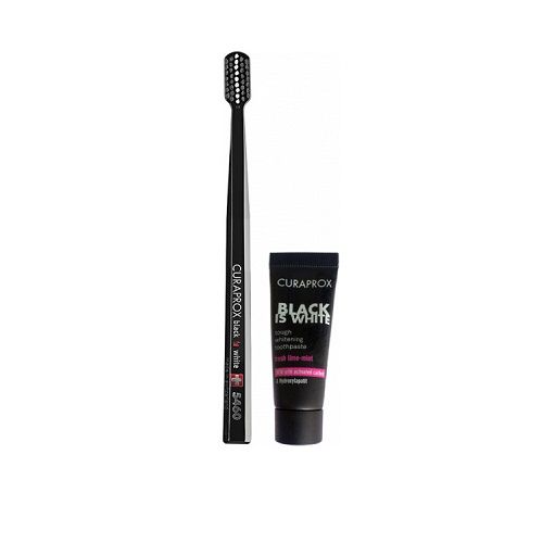 Щетка зубная "Black Is White" черная и миниверсия зубной пасты, 1 шт