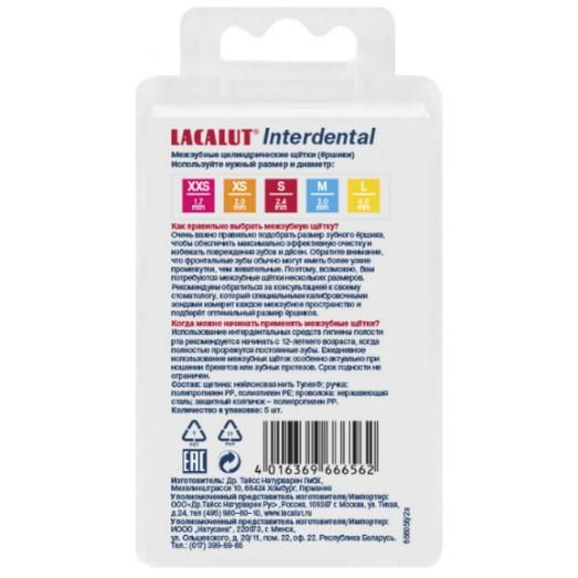 Межзубные щетки LACALUT Interdental предназначены для эффективной гигиены полости рта, особенно при наличии увеличенных промежутков между зубами и использовании ортодонтических систем (мостов, брекетов, имплантов). Их использование позволяет тщательно удалять бактериальный налет из межзубных и межпроксимальных пространств, а также труднодоступных участков.