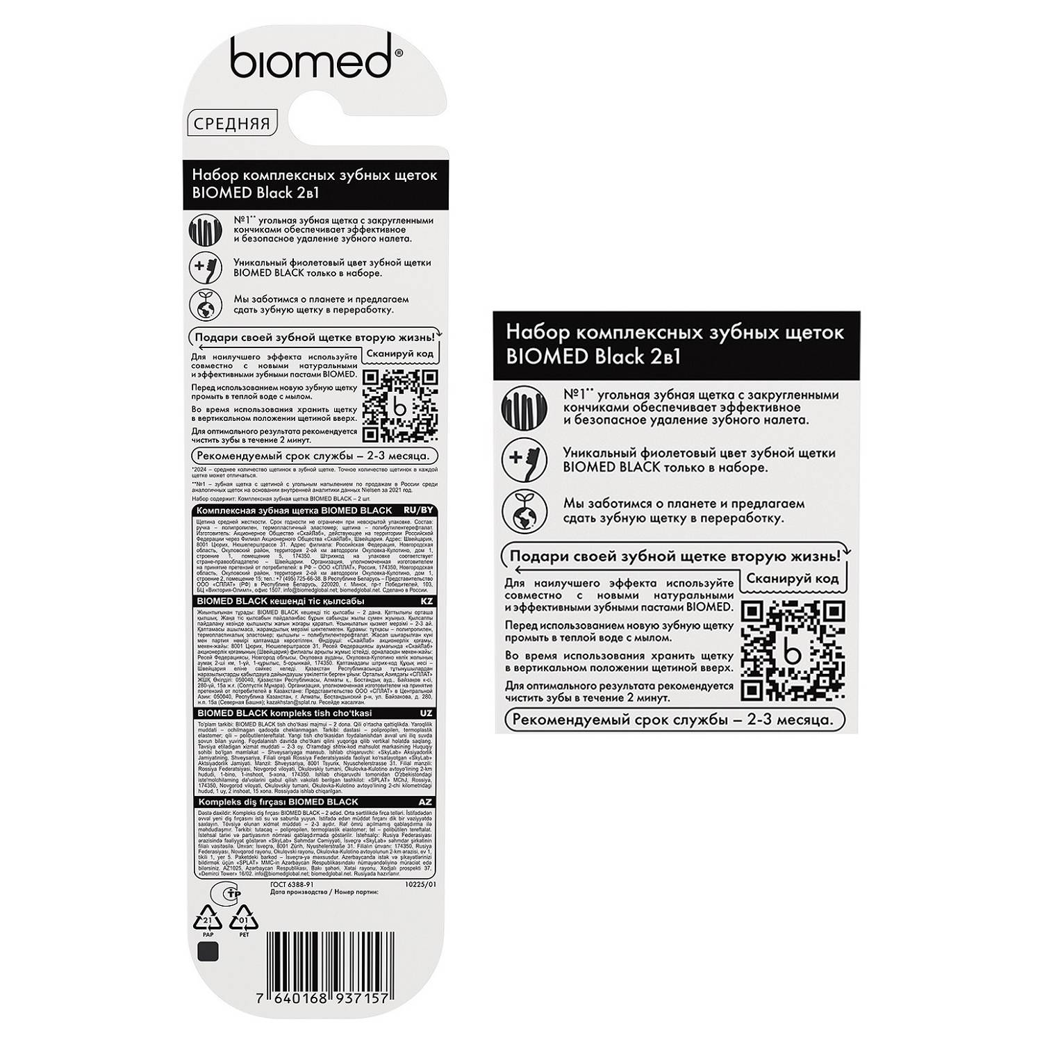 Набор комплексных зубных щеток Biomed Black средней жесткости: