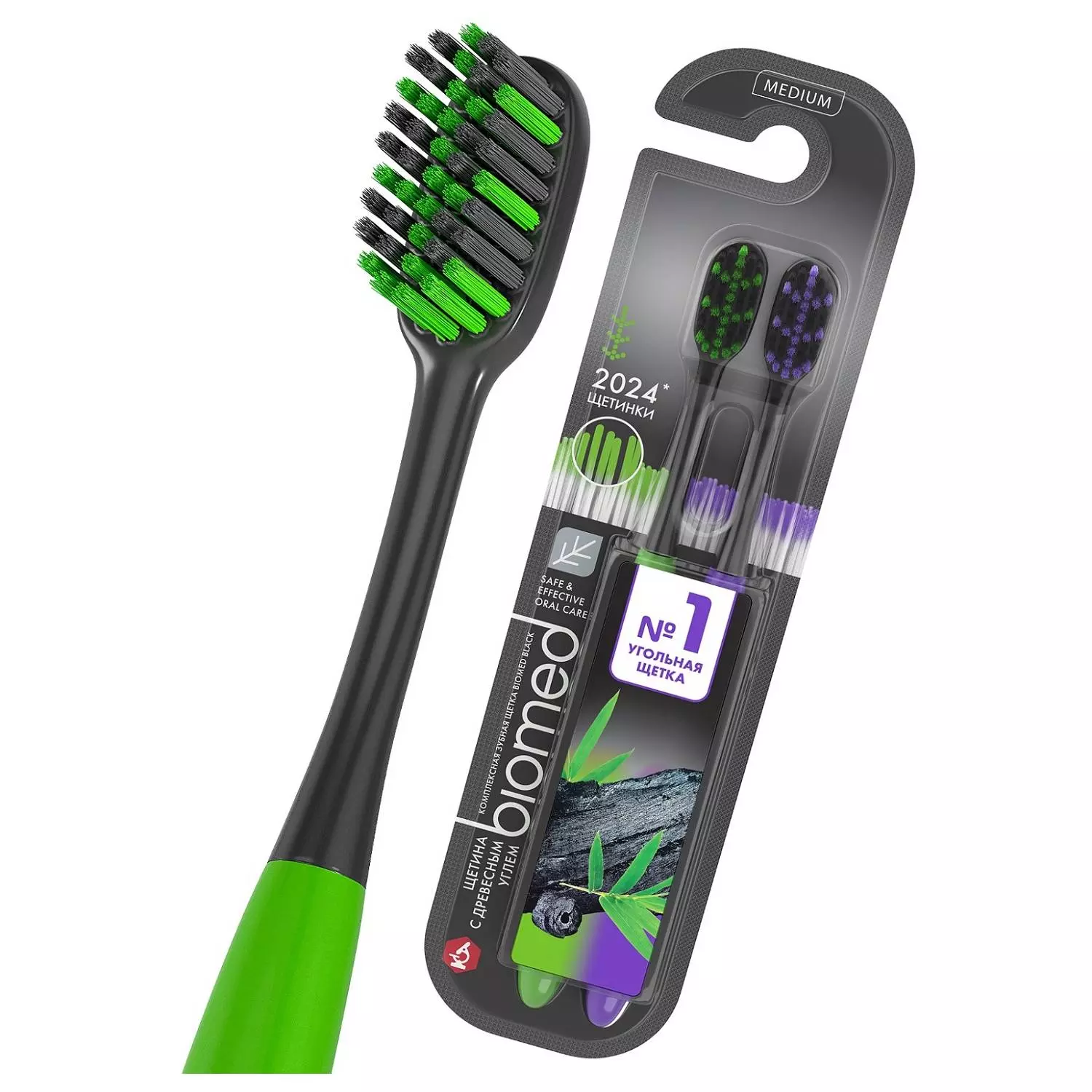 • угольная зубная щетка №1 с закругленными кончиками обеспечивает эффективное и безопасное удаление зубного налета
