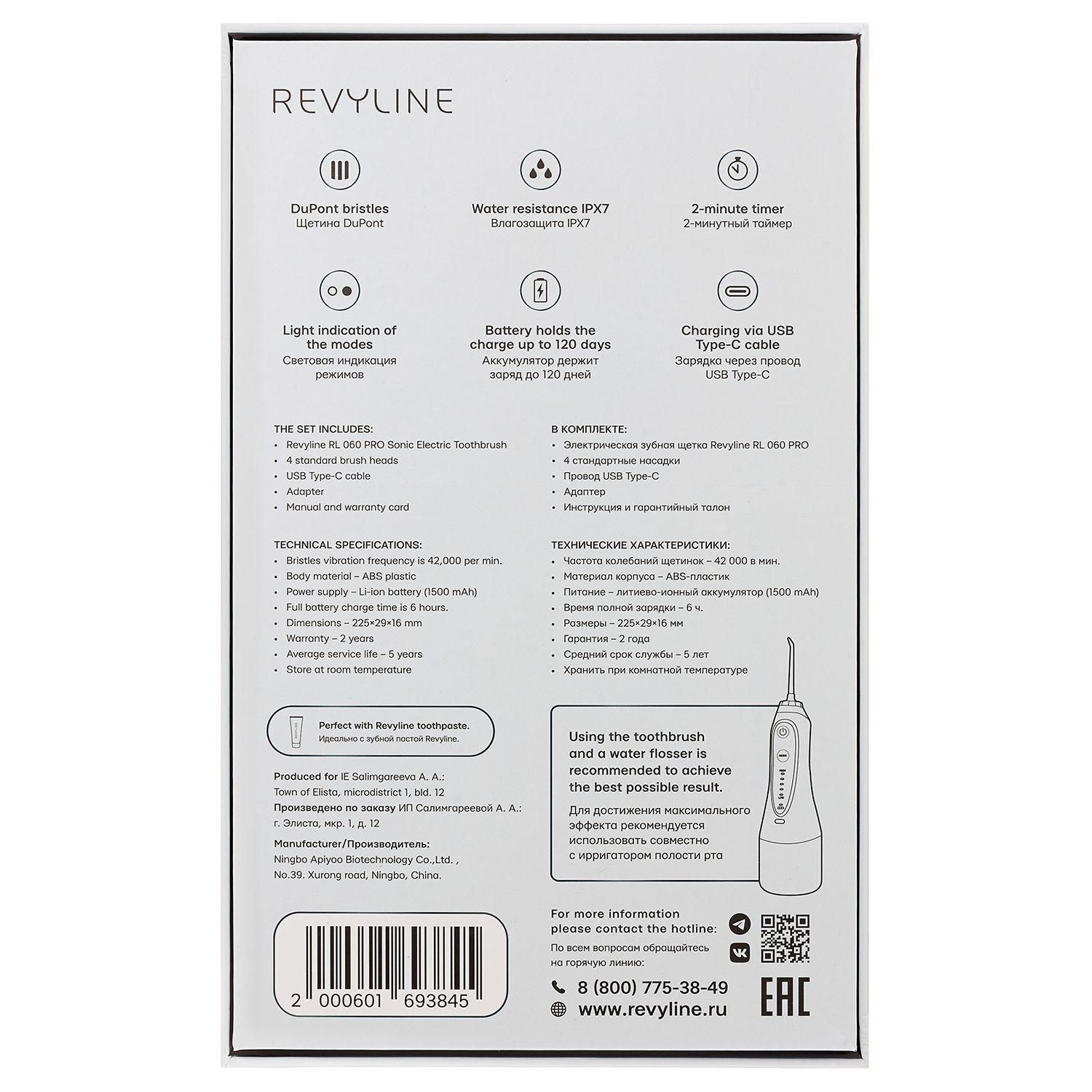 Электрическая звуковая зубная щётка Revyline RL 060 Pro - современный высокотехнологичный прибор, обеспечивающий эффективный уход за полостью рта. В комплект поставки добавили адаптер для зарядки, 1 сменную насадку уменьшенного размера и появился режим массажа десен.