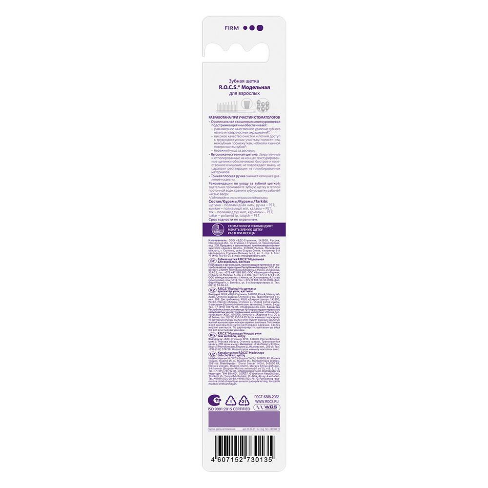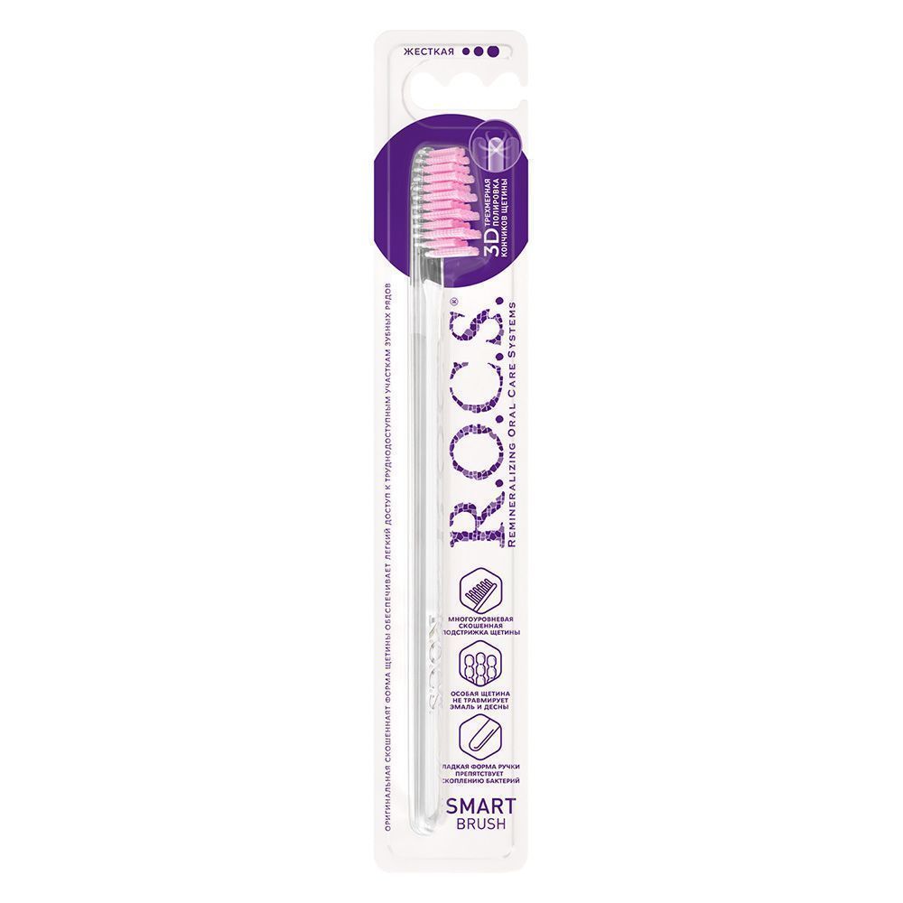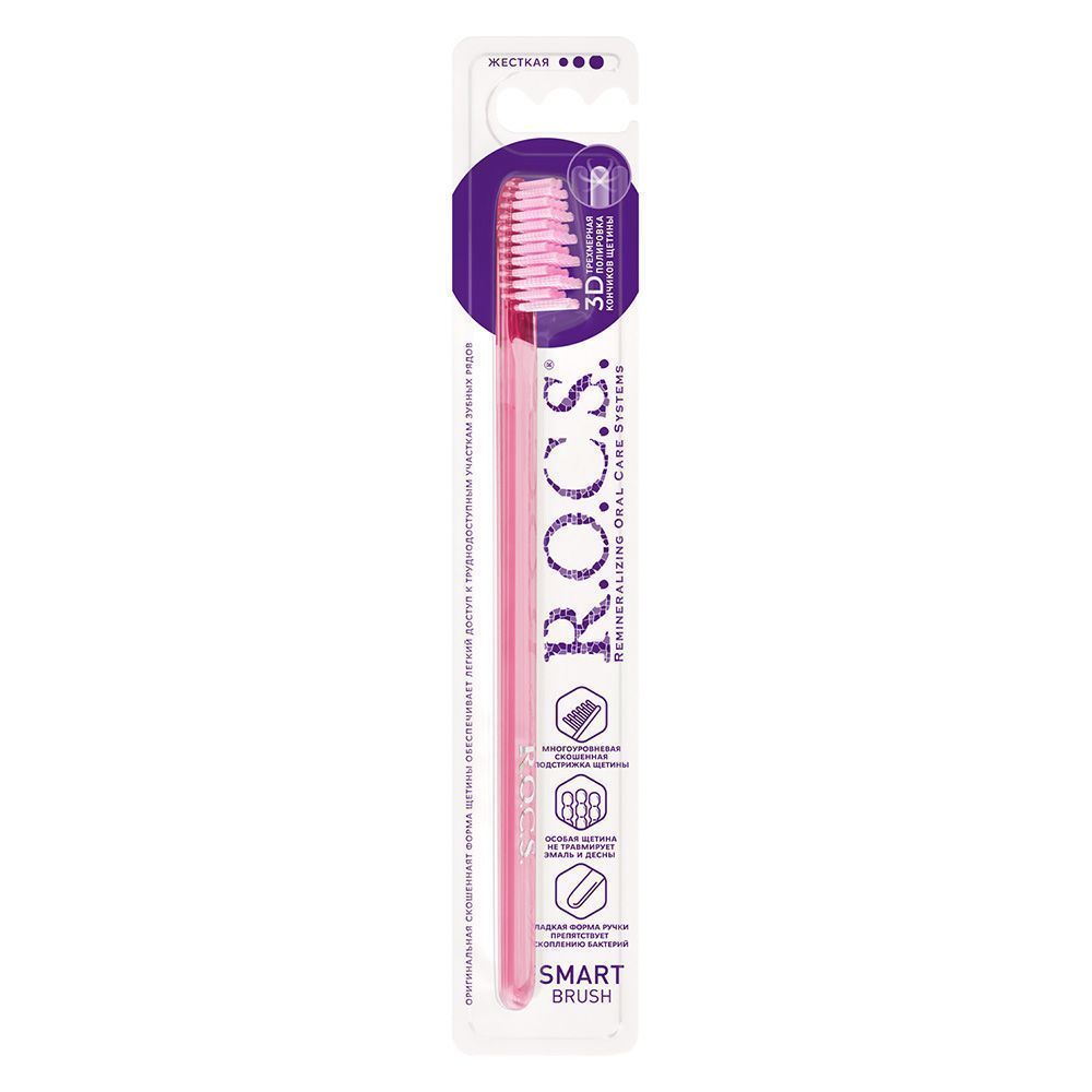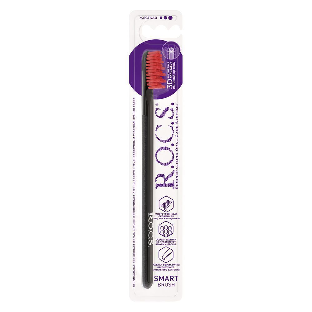 Уникальная форма головки зубной щетки R.O.C.S. - скошенная к концу головки щётки подстрижка щетины - повышает качество чистки поверхности зубов и позволяет с легкостью проникать в труднодоступные участки зубного ряда, а так же качественно очищать пространство между зубами, не повреждая десны. Тонкая плоская прозрачная ручка обеспечивает необычайную маневренность на всех участках зубного ряда. Волокно щетины производства фирмы «Pedex» (Германия) – мирового лидера в производстве высококачественных материалов. Кончик каждой щетинки закруглен и тщательно отполирован. Высококачественная щетина не повреждает эмаль зубов, не царапает зубные реставрации и не травмирует десны.